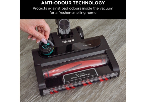 Yes, the Shark IZ400UK cordless vacuum features Anti-Odour Technology, a cartridge-based system that neutralises unpleasant smells inside the vacuum. As debris travels through the air path into the dust cup, the anti-odour cartridge releases a light scent that combats odours caused by hair, dust, and dander. Users can adjust the intensity of the fragrance using a dial located on the floorhead, tailoring the freshness level to their preference. This feature is especially beneficial for homes with pets or high allergen levels, helping maintain a cleaner-smelling environment during and after vacuuming.