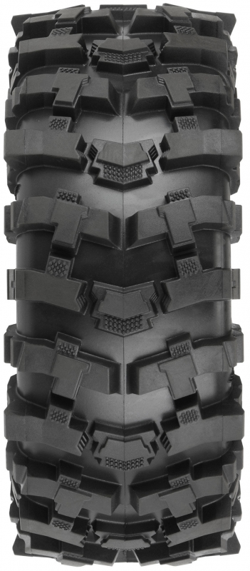 Coming in at a massive 4.85" tall x 2" wide, this is one of the largest 1.9" tires Pro-Line has ever made! Molded in your choice of our legendary G8 or Predator compounds, all the details of this gnarly tire are captured in perfect 1/10 scale detail: from the Tread Biter™ cleats for added traction to the Mud Scoops for added cleaning power, to the Massive Sidebiters® and angled shoulder scallops for ultimate side grip. Symmetric directional tread pattern provides excellent traction and cleaning power as well.