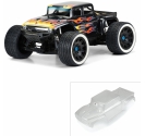 This is a 1956 Ford® F-100 Clear Body for X-MAXX®. Pro-Line is excited to bring some retro classic styling to the X-MAXX® for the first time! This old-school Ford F-100 body completely transforms the look of your truck, featuring a custom hot-rod style extended cab, aggressive fender flares, and the iconic old-school chrome grill of the '56 blue oval fan favorite. Pair the F-100 with the Menace 5.7" Belted Tires (PRO1020510) for a true street machine combo!