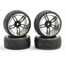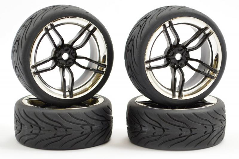 Pre-Mounted sets of 4 wheels and tyres. For 1/10th touring, drift or rally cars with a 12mm hex fit.
