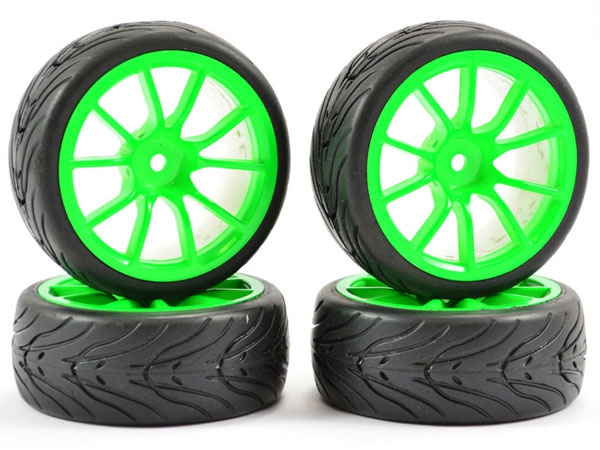 Fastrax 1/10 Street/ Tread Tyre 10 Spoke Neon Green Wheels