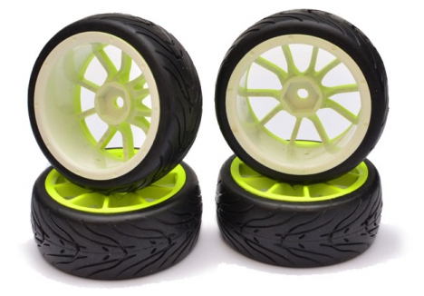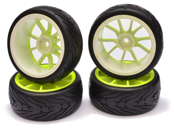 Fastrax 1/10 Street/ Tread Tyre 10 Spoke Neon Yellow Wheels