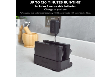 - Removable Twin Batteries - enjoy up to 120 minutes of run-time with flexible charging options