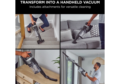 - Handheld Conversion: Transforms into a cordless handheld vacuum for stairs, upholstery and car interiors