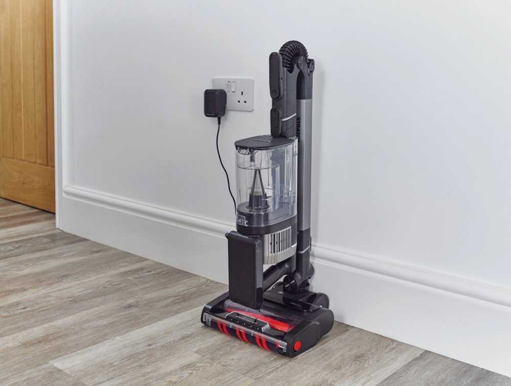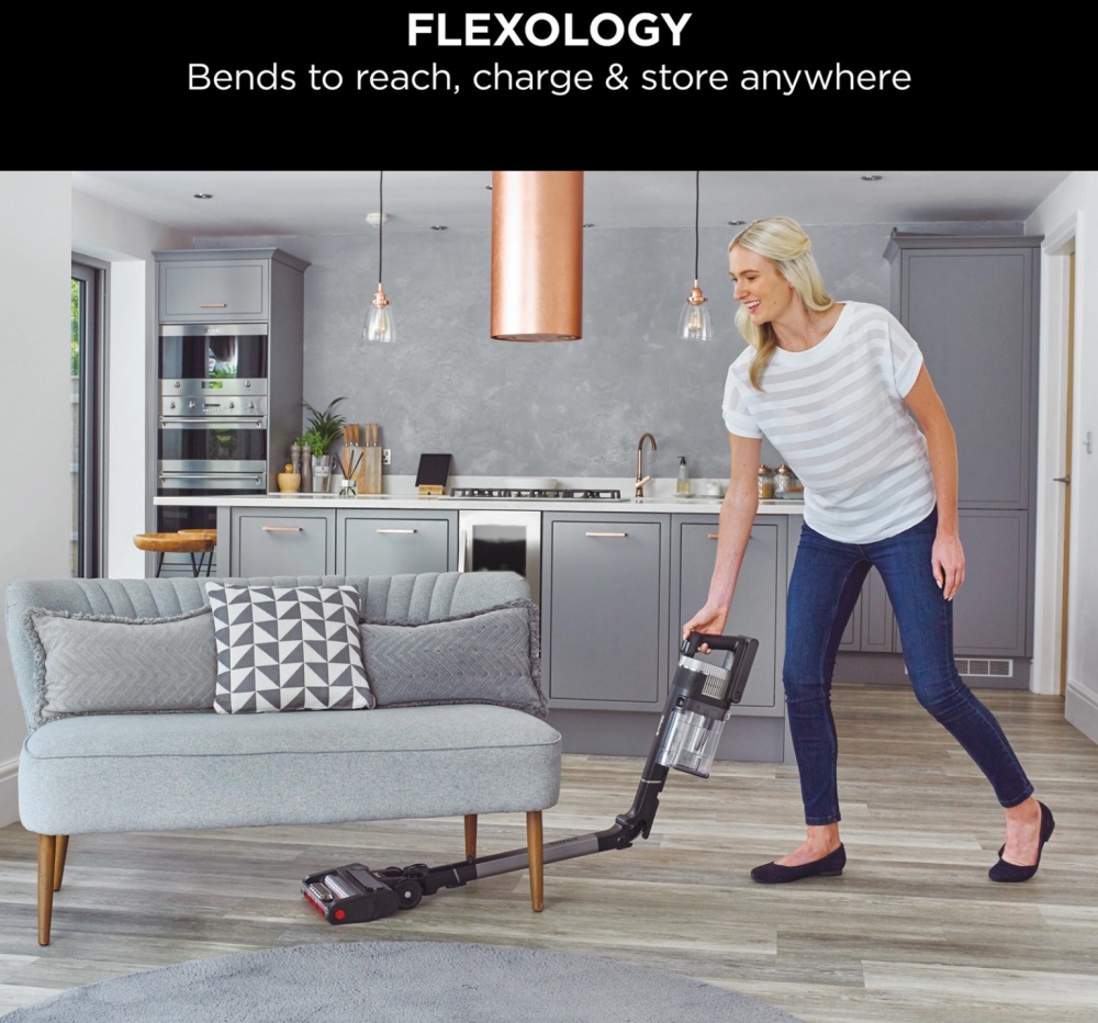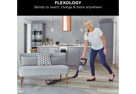 The Shark Stratos vacuum with motorised pet tool and anti-allergen seal includes Shark’s Flexology wand, which bends at the touch of a button to clean under low-lying furniture without straining. After use, the wand folds down for compact, freestanding storage — ideal for homes with limited space. This feature also allows convenient charging without the need for a docking station, making the vacuum easy to store and recharge anywhere in the home.