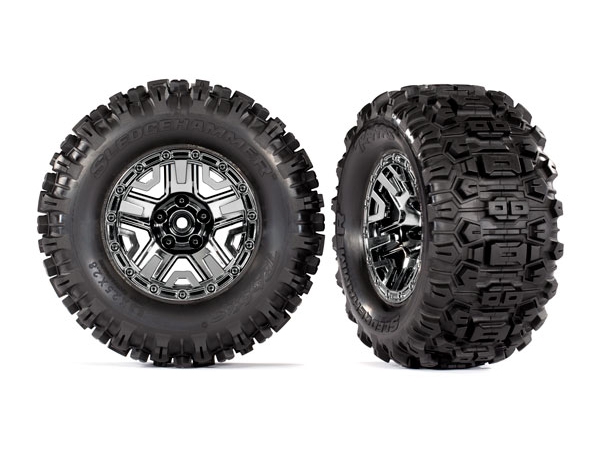 Tires & wheels, assembled, glued (black chrome 2.8" wheels, Sledgehammer™ tires, foam inserts) (2) (TSM® rated)