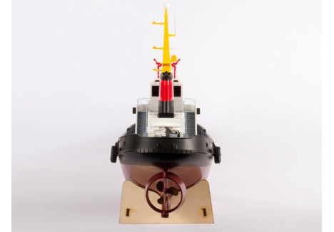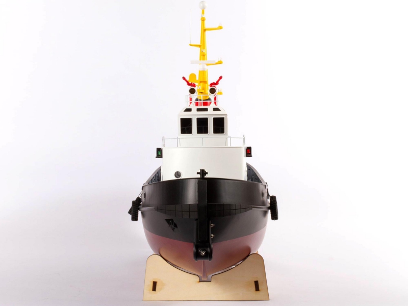 The Pro Boat scale boat with operating water cannon setup and display stand is designed to be both functional and presentable. The water cannon plumbing is pre-installed and ready for activation via a third-channel pump, adding interactive realism to the boat’s capabilities. The included wooden display stand features foam padding to protect the hull and doubles as a maintenance platform. Whether you're showcasing the tug in your collection or preparing it for a day on the water, this stand adds convenience and professionalism to the ownership experience.