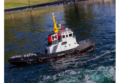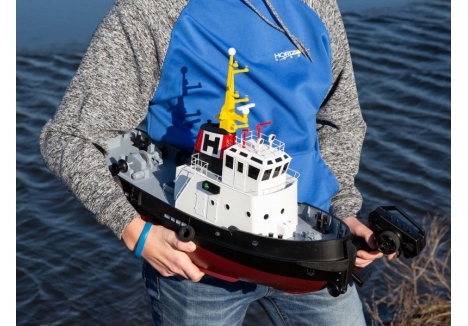 - Transmitter: Horizon Harbor 30" tug with 2.4GHz FHSS transmitter and Kort nozzle steering – 3-channel control with interference-free signal