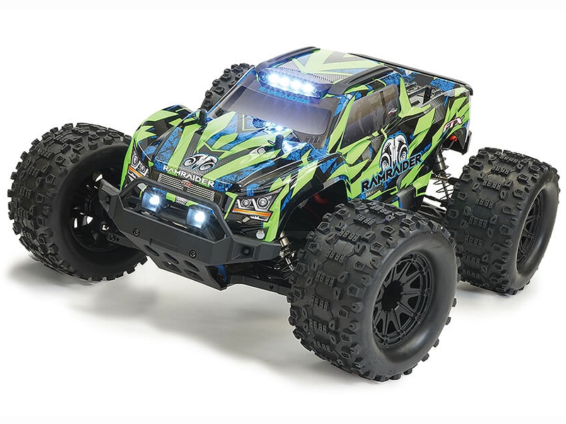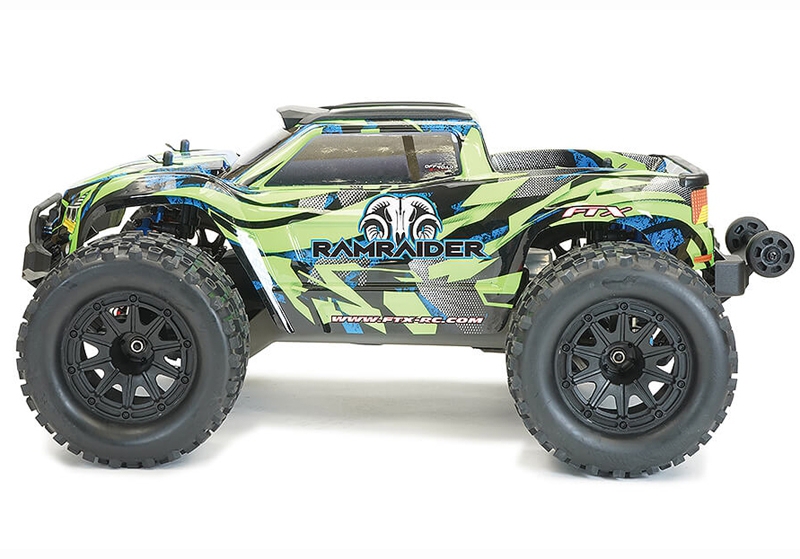 - Product Type: FTX FTX5497GB Ramraider 1/10 Brushless Monster Truck, FTX FTX5497GB 4WD RTR Brushless Monster Truck, FTX FTX5497GB Ramraider RC Truck Green/Blue, FTX Ramraider FTX5497GB with aluminium shocks and LED roof lightbar, FTX Ramraider FTX5497GB brushless RC truck with metal geared differentials and CVA driveshafts