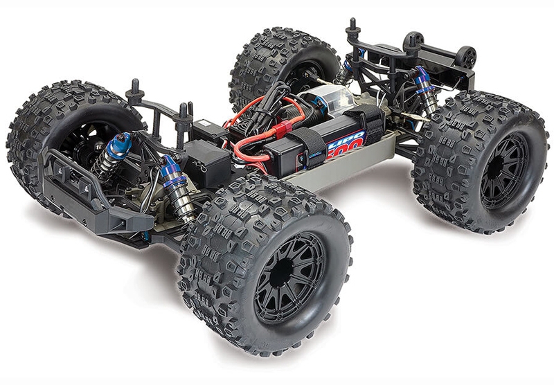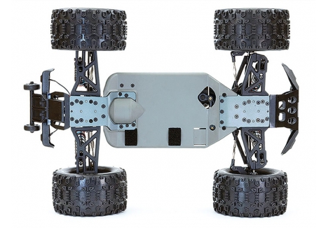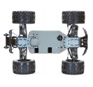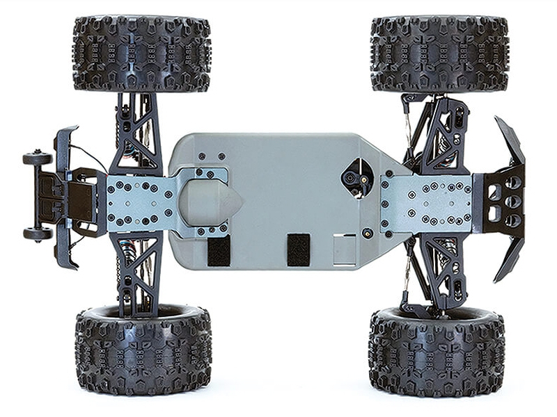 Oil filled aluminium shock absorbers along with a raised high clearance main chassis, with aluminium front and rear skid plates glide over most terrain effortlessly. Should you take a tumble, shock absorbing bumpers and moulded body roof and tail skid bar rails help protect from heavy damage when possible.