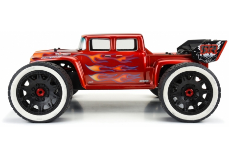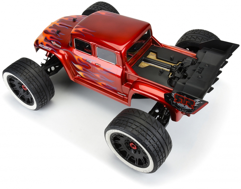 It comes pre-cut for your convenience in high-quality clear polycarbonate for you to add your custom paint scheme. You can choose to remove the rear wing of your Kraton™ Â 8S for a street-truck look or trim out the rear tailgate of the body on the marked lines to keep the speed-truggy style wing installed. As always, a detailed decal sheet, window masks, and paint-then-peel overspray film are included.