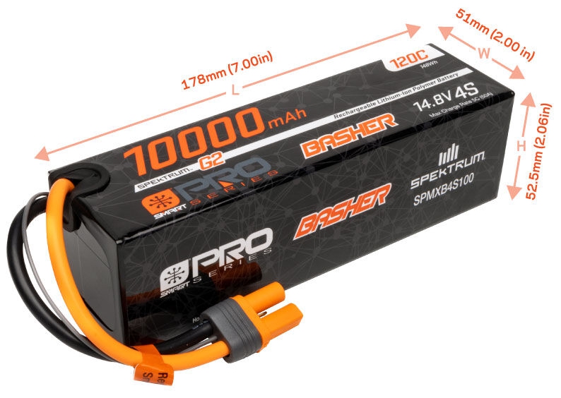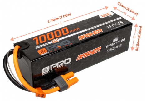 - (1) Spektrum O-SPMXB4S100 14.8V 10000mAh 4S 120C Smart G2 Pro Basher LiPo Battery with IC5 Connector