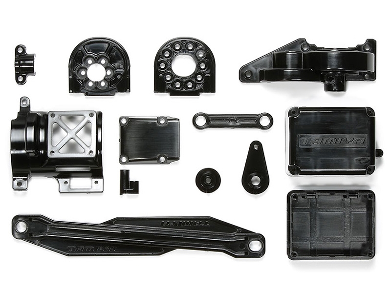 These are the D-parts to the TT-02 chassis platform. They contain the motor mount, gear cover and battery strap.