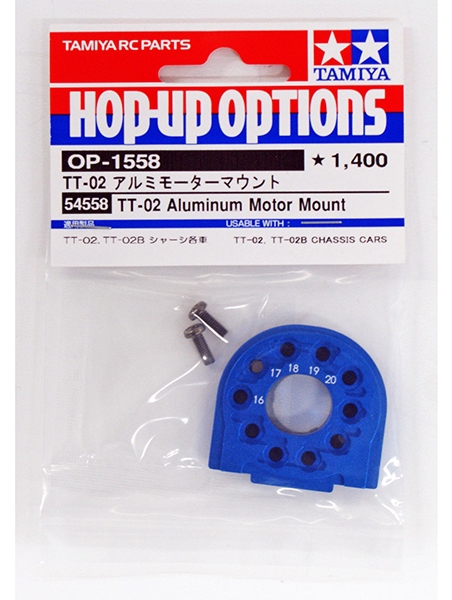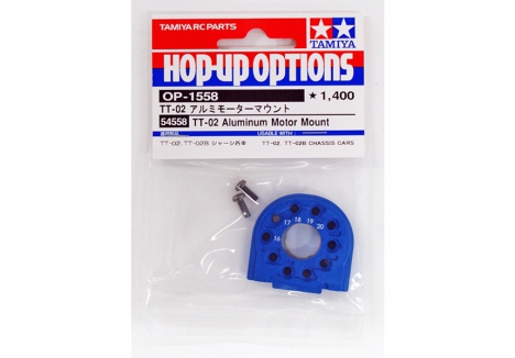 This is an aluminum motor mount designed to replace the kit standard plastic mount on the TT-02 and TT-02 B car chassis.