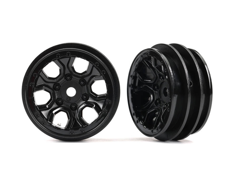 Designed for TRX-4M models, these 1.0" Black Chrome multi-spoke wheels hold the tyre securely for rugged crawling action. Sold as a pair. (Fits 7 mm wheel hex)