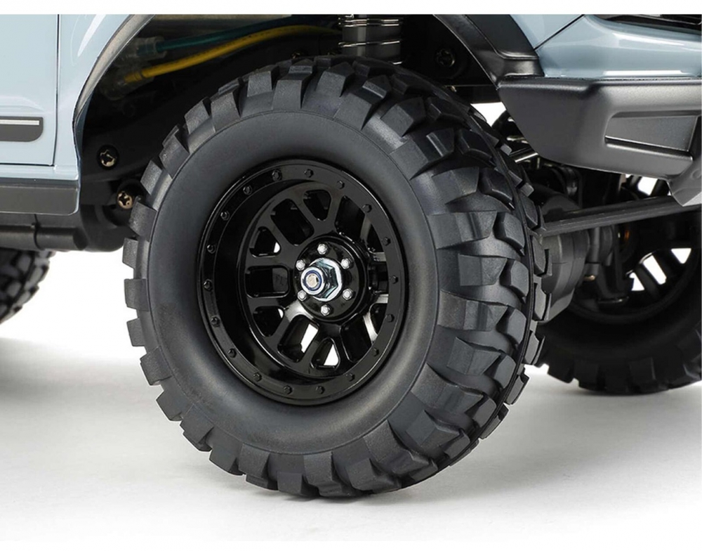 The Tamiya 1/10 Bronco painted CC-02 replicates the new Bronco First Edition’s iconic styling, from its sculpted grille to the Wildtrak-inspired body panels. Detailed PC-ABS H-parts and metal-plated light cases enhance realism, and included stickers complete the look. Builders experience a faithful scale replica with durable materials that stand up to real-world crawling.