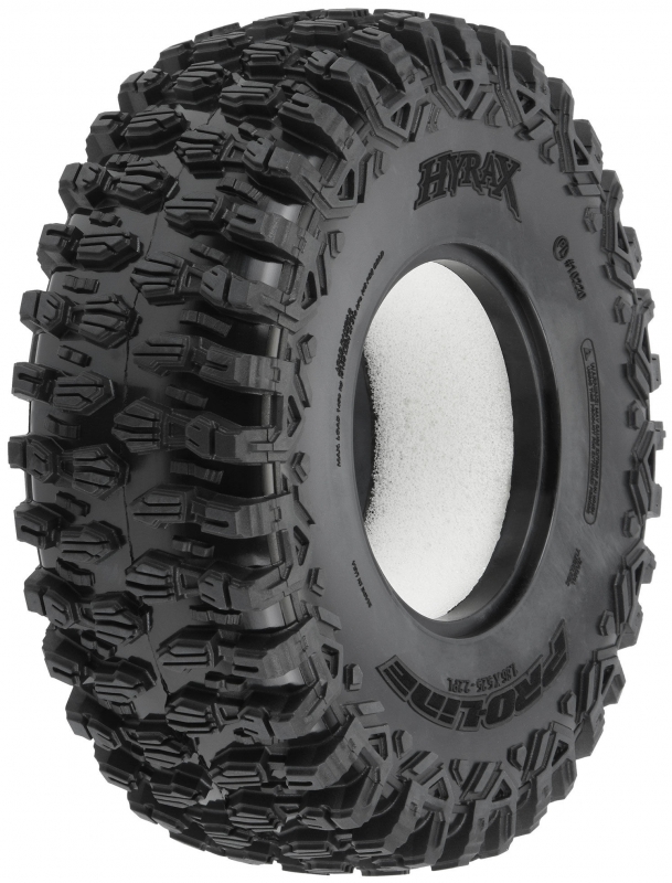 The legendary Hyrax was designed for maximum grip on the toughest terrain. It features an aggressive and open tread pattern with each tread block containing multiple Sipes for incredible tread flex. The highly detailed connected tread on the sidewall of the Hyrax extends out for unmatched side-hilling performance. The Hyrax also features futuristic stepped tread blocks that create even more forward-ripping edges that dig into slick rock like no other scale tire Pro-Line has produced to date! The Hyrax is made from Pro-Line's Legendary G8 material, so you know it provides the performance you can depend on.