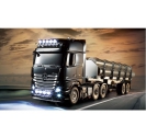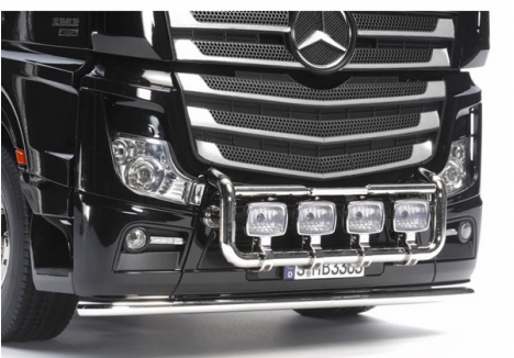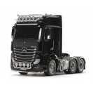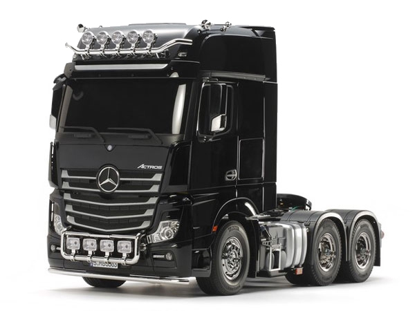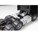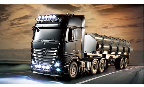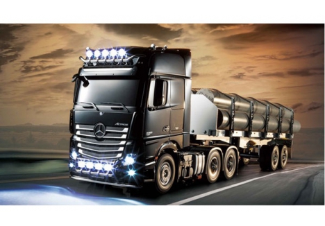 This is a highly accurate 1/14 scale radio control model that recreates the Mercedes Benz Actros 3363 3-axle truck. The Actros series debuted in 2011 and was named 2012 Truck of the Year. Powered by a 15.6-liter inline-6 turbocharged diesel putting out a max of 630hp, the actual 3363 can haul up to 250 tons!