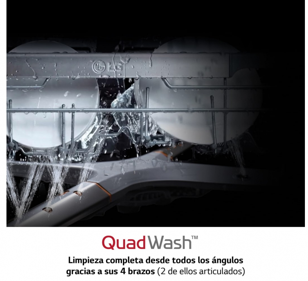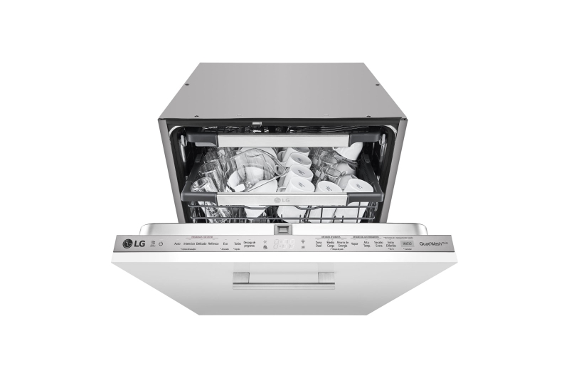This LG DB425TXS integrated dishwasher uses QuadWash™ to clean from every angle. The four multi-directional spray arms deliver powerful jets that reach deep into corners, ensuring no item is left untouched. Whether you're washing large pans or delicate glassware, this system guarantees a comprehensive clean every time, helping you spend less time pre-rinsing and more time enjoying spotless results.