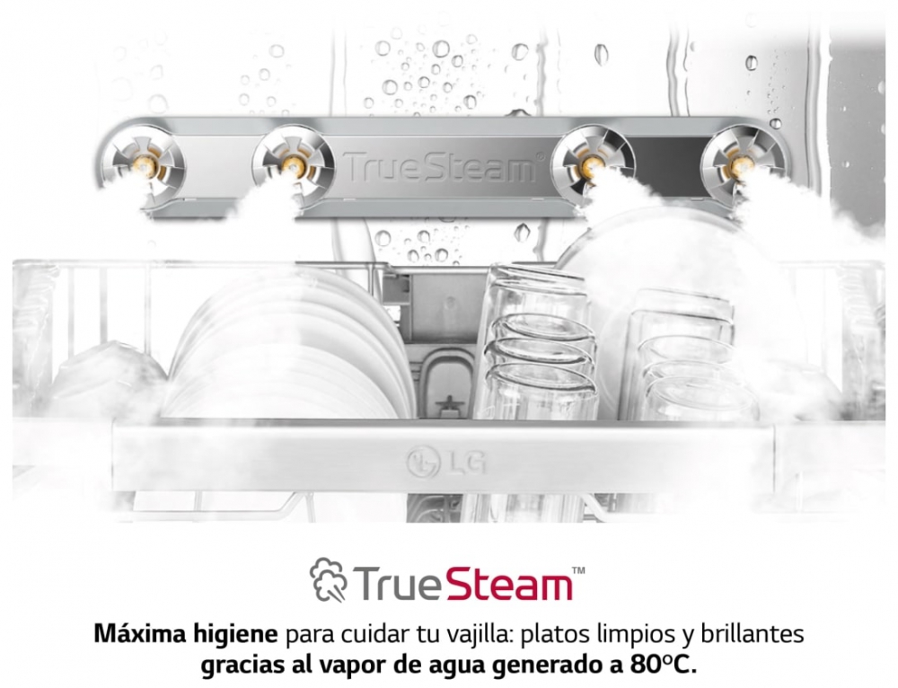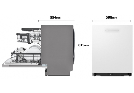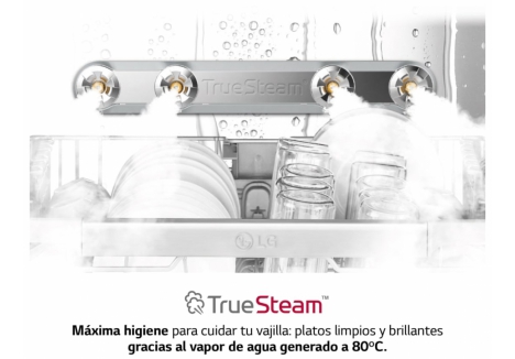 The LG DB425TXS built-in dishwasher redefines dishwashing with its cutting-edge steam cleaning system and powerful performance. Designed for modern households, this sleek and spacious LG fully integrated dishwasher offers a 14 place setting capacity, delivering reliable results with every cycle. TrueSteam™ technology uses high-temperature vapour to eliminate up to 99.99% of bacteria, break down stubborn food residues, and reduce water spots for a hygienic, spotless finish.