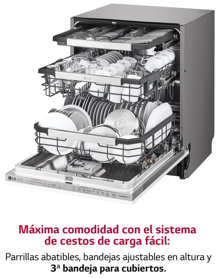 Quiet, energy-efficient, and packed with intelligent features, the DB425TXS is ideal for families, entertainers, and anyone looking to upgrade their kitchen appliances. Transform your routine and buy LG DB425TXS fully integrated dishwasher with steam and 3rd rack for a powerful, hygienic, and connected dishwashing experience.