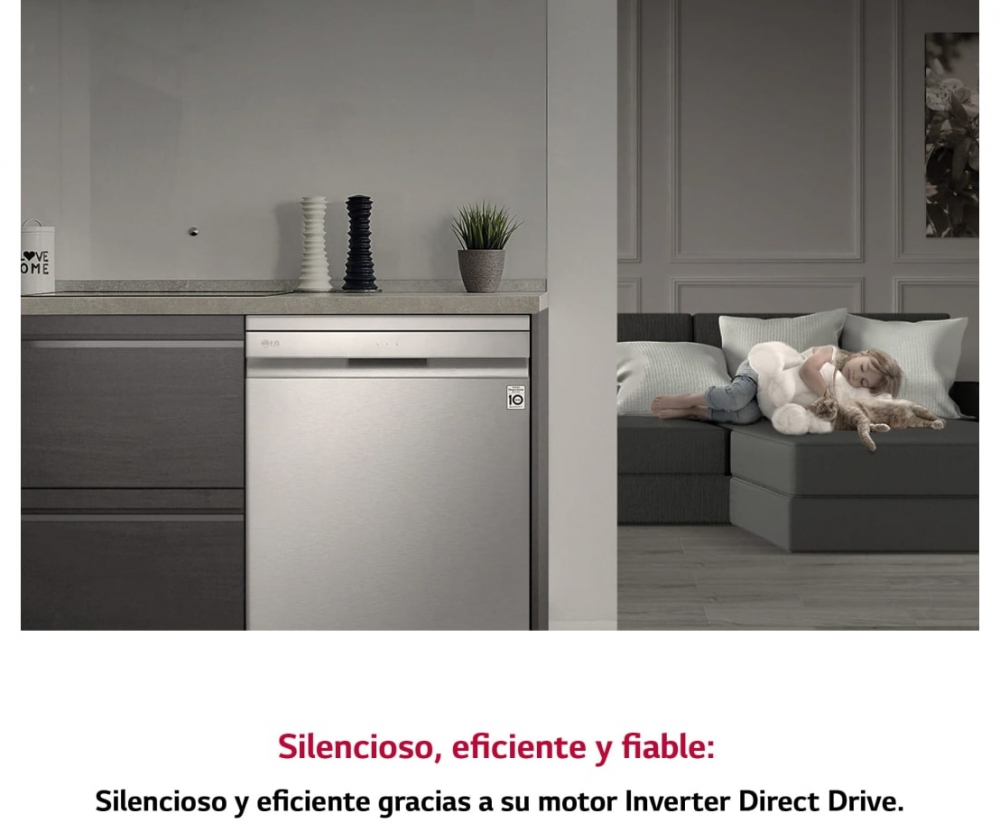 Engineered for peace of mind, the Inverter Direct Drive Motor delivers whisper-quiet operation at just 43 dB. With fewer moving parts, this motor ensures long-lasting reliability and comes backed by LG’s 10-year warranty. As an affordable LG built-in dishwasher with smart inverter and eco wash, the DB425TXS combines energy efficiency and silent performance in one beautifully integrated design.