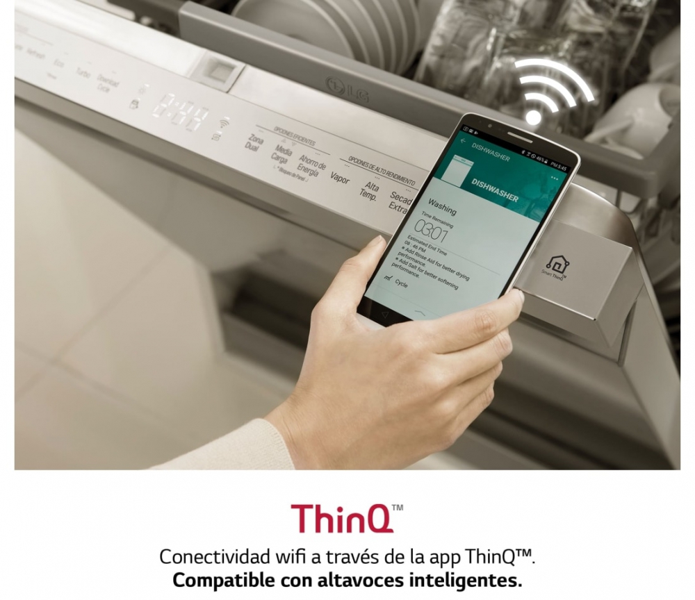 Connect your dishwasher to the LG ThinQ™ app to download additional wash cycles, set personalised cleaning preferences, and receive helpful notifications. Whether you need a cycle for casseroles or glassware, the app adapts to your lifestyle. Smart Diagnosis™ is also built-in, allowing you to troubleshoot potential issues quickly and efficiently through your smartphone — making this one of the best LG integrated dishwashers for families with large capacity and steam cleaning.
