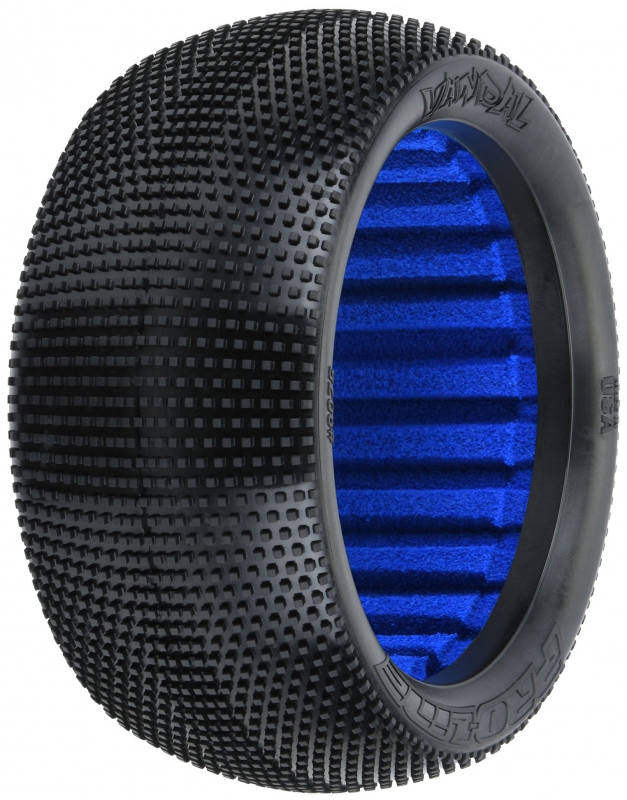 Vandal development started with Pro-Line's latest generation carcass profile that utilizes a single arc to create the sidewall geometry, then transitions from the sidewall to the crown with a larger radius resulting in a rounder and less edgy appearance. This carcass provides a tailored fit to the wheel and insert package, making mounting a breeze. Focusing on grip, the Vandal's center tread density is optimized for longevity in longer runs while the addition of micro-pins at the outer edges reduces edginess in the bumps. Competitors can expect the Pro-Line Vandal tires to deliver improved consistency, drivability, and durability.