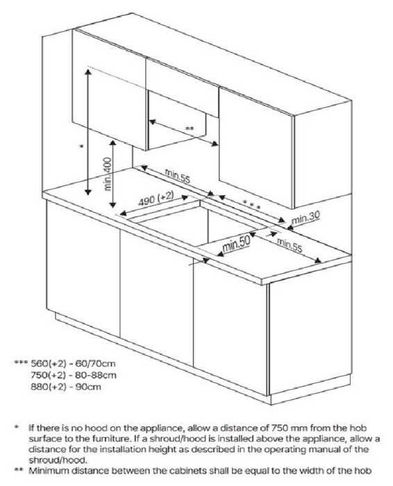 • Worktop Cut-Out Dimensions: 560mm x 490mm – standard size for built-in hobs
