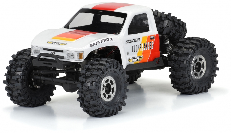 The Cliffhanger is made from a single piece of crystal-clear polycarbonate and includes polycarbonate headlight buckets. It's proudly made in the USA and includes a decal sheet, window masks, and paint-then-peel overspray film. Don't get stuck behind on the rocks, get your very own Cliffhanger body today!