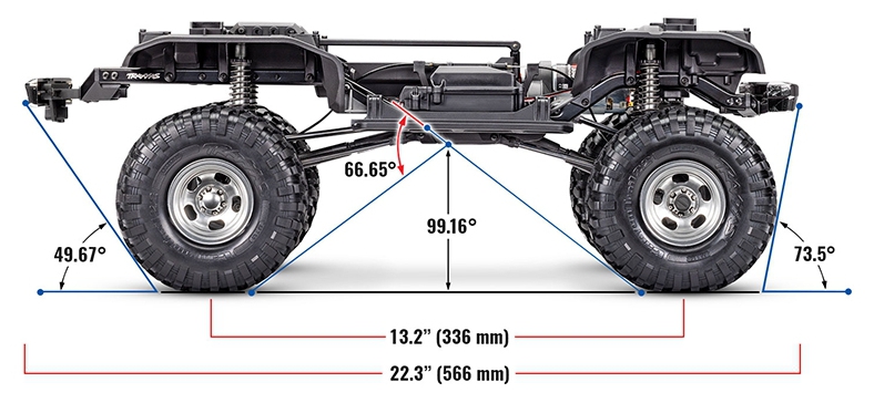 - Center Ground Clearance: 9.9 cm – raised chassis clears trail obstacles with ease