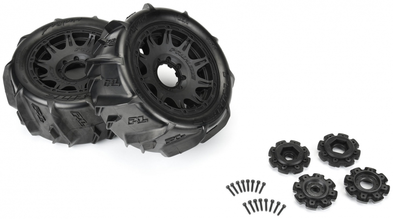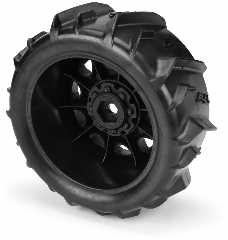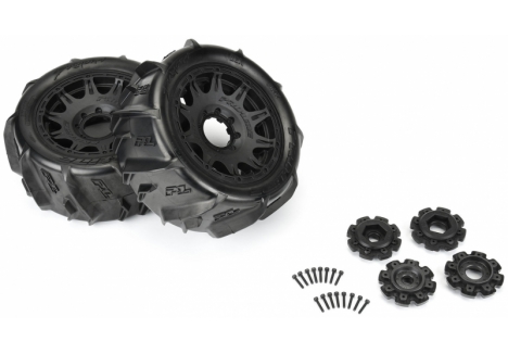 PRO1020211Â | Dumont 5.7" Paddle Sand/Snow Tires Mounted on Raid Black 8x48 Removable 24mm Hex Wheels (2) for X-MAXX®, KRATON™ 8S & Other Large Vehicles Front or Rear