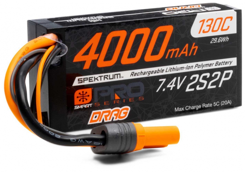 For RC Drag Racers, power is key, and the new Spektrum Smart Pro No Prep Series batteries deliver! The Pro series batteries allow for more capacity to be squeezed into the LiPo cells, allowing for larger power ratings when compared to similarly sized battery packs. The Pro No Prep Series features a hardcase shell that is thinner and more lightweight, all the while staying rigid, durable, and impact resistant. This series lives alongside current Smart G1 and G2 batteries and is an upgrade to standard hardcase surface packs.