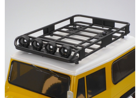 A roof rack with light pods is realistically depicted with separately molded parts.