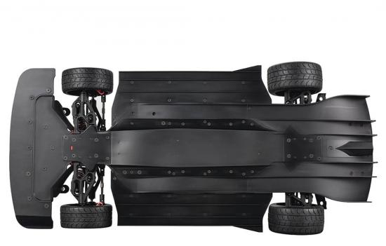 Under the hood, a Hobbywing 150Amp speed control and 2000kv 4274 4-pole brushless motor are ready to link up with your choice of 4S or 6S LiPo battery power, for some rubber burning street runs. With speed you need control and with channelled chassis side guards and a rear diffuser for ground effects, coupled with Fastrax F-Zero high traction tyres that are internally belted to stop expansion under power, using a wider rear footprint, high speed stability is assured.