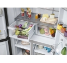 Silver-framed crystal-clear door bins and glass shelves add style and durability. The 4-star rated freezer guarantees safe long-term storage of frozen foods, while the vertical layout of the doors makes every shelf easily accessible.