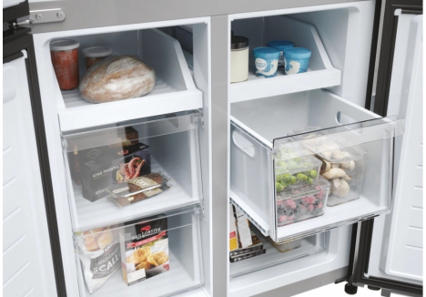 With a total gross capacity of 467 litres, the appliance includes 311L of fridge storage and 156L of freezer space. It’s equipped with four freezer drawers, two adjustable fridge shelves, and a dedicated My Zone compartment where temperature can be fine-tuned for meats, vegetables, or drinks.