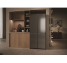The New Platinum Inox finish not only looks refined but is also easy to keep clean. The comfortable integrated handles and silver details elevate its modern aesthetic. With dimensions of 83.3 cm wide, 65 cm deep, and 181.5 cm high, it fits comfortably in larger kitchen layouts while still offering streamlined access.
