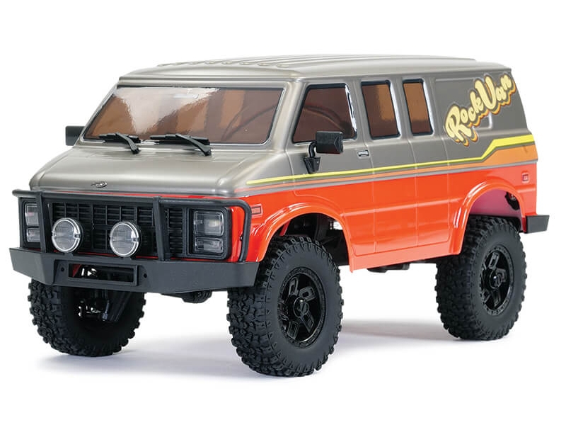 On the outside, scale finishing such as moulded bumpers, full function LED light system mounted in moulded light buckets with lenses, wipers, mirrors, bead lock wheels and hidden body mounting make the Rock Van a real head turner. Furthermore, optional accessories such as inner body fenders, brass wheel weights and oil filled shock absorbers will take your rig to a whole new level of scale performance.
