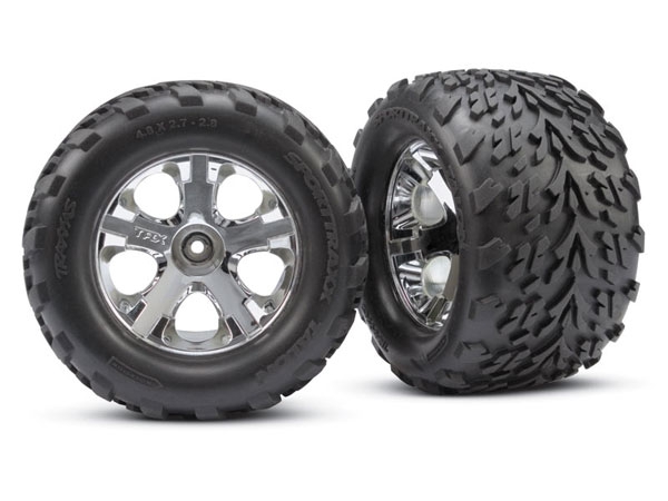 Talon assembled and glued 2.8in tyre sets make it easy to maintain peak performance. Talon Tyres are proven to provide injust-rightin grip and handling on a wide variety of surfaces. Soft rubber compound with foam inserts extend grip. The All-Star 5-spoke wheels combine structural strength and futuristic styling. The horizontal bead helps to hold the tyre, reducing stress placed on the glue joint by tyre expansion. The chrome finish is tough for long-lasting good looks. Available in mirror chrome and black chrome finishes.