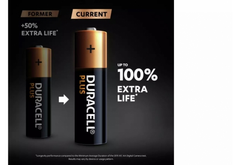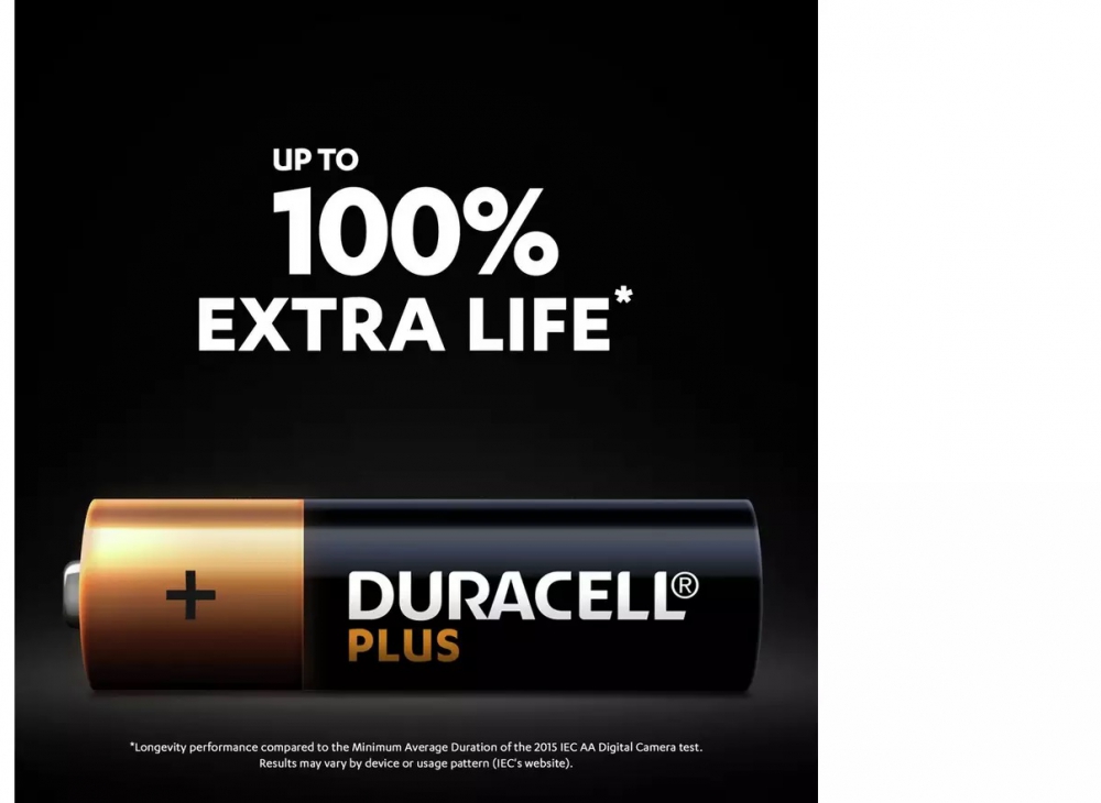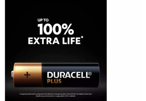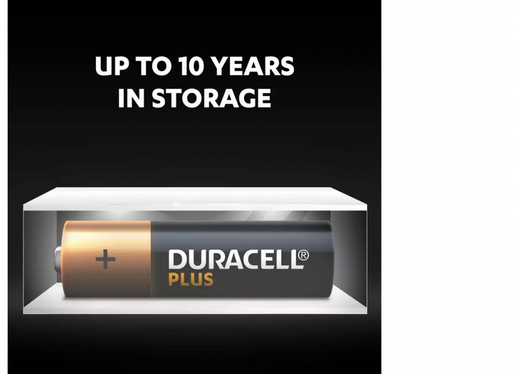 Duracell Plus AA has up to 100% extra life longevity performance compared to the Minimum Average Duration of the 2015 IEC AA Digital Camera test. Results may vary by device or usage pattern (IEC's website. Unused Duracell batteries can stay powered up to 10 years in ambient storage. These batteries are Duracell's recommendation for everyday devices, such as digital cameras, photoflash, toys or boomboxes, and of course are great fit for the regularly used devices as flashlights, portable game controllers, shavers, toothbrushes and any other.