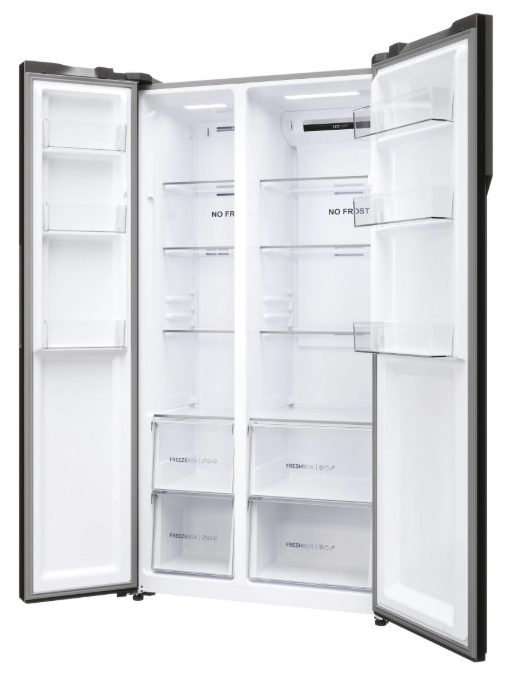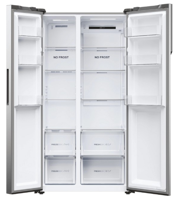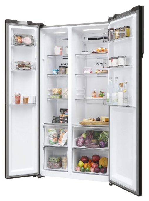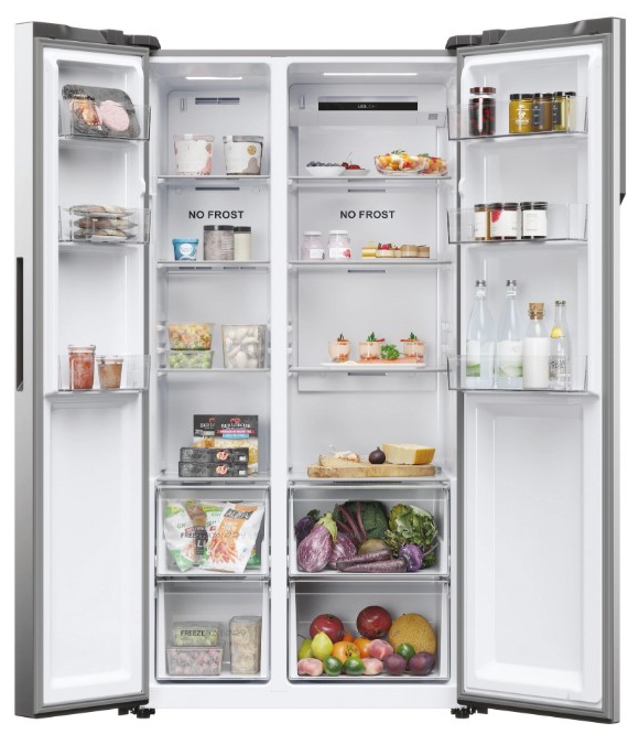If you value both performance and presentation, the Haier 90.5cm American style fridge freezer offers an excellent balance. With a generous capacity, intuitive controls, and a stylish platinum inox finish, it’s built for families who need reliability and refinement. The smart layout ensures everything from daily essentials to large platters has its place. For homes that need performance without compromise, this is a stand-out choice.