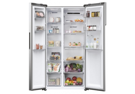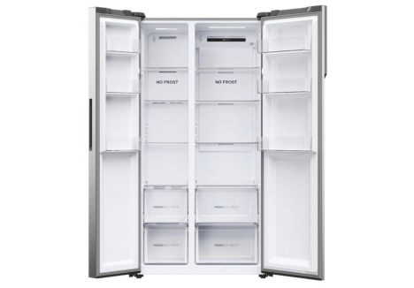 Upgrade your kitchen with the Haier HSR5918DNMP fridge freezer, a refined and high-performing cooling solution designed for spacious, modern households. This Haier 90.5cm American style fridge freezer delivers a sleek platinum inox finish that enhances the aesthetic of any kitchen while offering intelligent storage, powerful preservation, and effortless efficiency. With its large 528-litre total capacity, this Haier total no frost fridge freezer is perfect for families who need space, style, and performance in one sophisticated appliance.