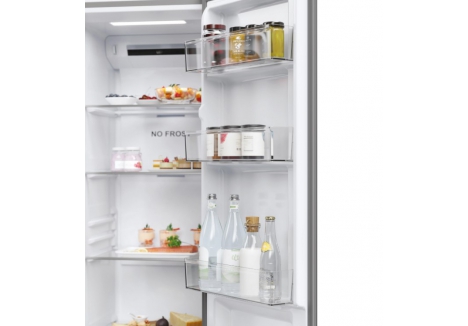 One of the standout features of this Haier total no frost fridge freezer is its low-maintenance design. The Total No Frost system eliminates ice build-up by maintaining a consistent temperature throughout the fridge and freezer compartments. You won’t need to manually defrost your freezer again, saving you time and preserving energy efficiency. Combined with the 'Fresher Shield' design, this technology also prevents warm air from entering during defrost cycles, enhancing food preservation and reducing power loss.