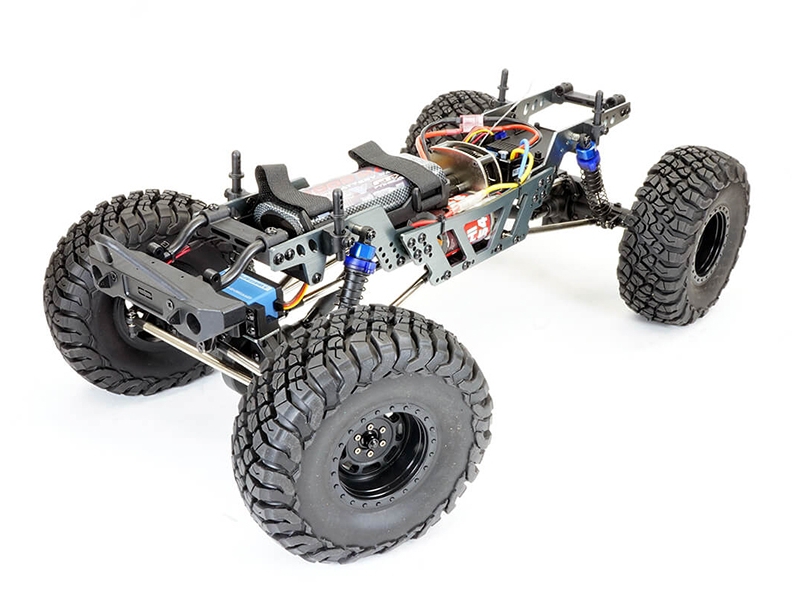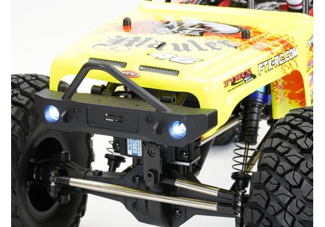 Updated now with the Etronix 4ch radio and System 3 waterproof ESC/ RX/LED intelligent light smart controller providing a wide array of different lighting options, along with plug-in bumper lights there is plenty of options for additional lights. Combined with the 4wd locked transmission and high torque gearing the combination provides super slow control when climbing or descending steep inclines.