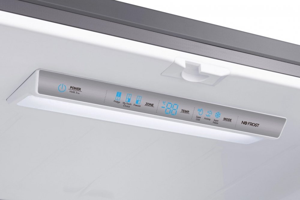Super Cool and Super Freeze functions provide instant temperature drops to rapidly chill drinks or lock in the nutrition of newly stored groceries. These options are ideal when returning from a shopping trip, helping you preserve the quality of food items without delay. The intuitive LED display, located discreetly behind the door, gives you complete control with just a touch.