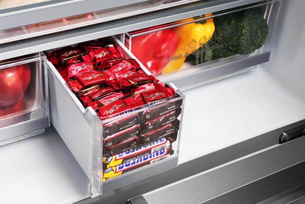 This multi door fridge freezer stainless steel finish unit includes three independently controlled compartments, ensuring tailored temperature settings for different food types. The centre drawer—dubbed "My Fresh Choice"—can switch between refrigeration and freezing modes with a range of -18°C to +5°C, offering versatile options for meats, drinks, or extra vegetables as needed.