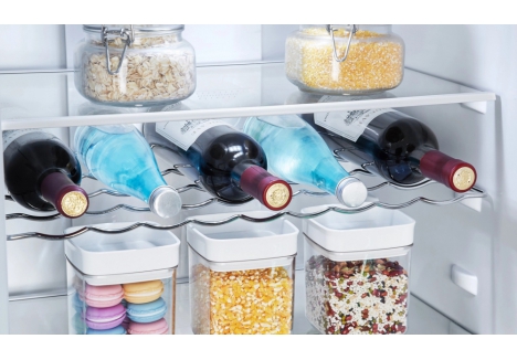 Absolutely. The Hisense fridge freezer with LED display and wine rack combines functionality with elegance. The LED display ensures that all settings are clearly visible and easy to adjust, while the chrome wine rack provides a stylish and secure space for bottles. This frees up shelf space and prevents bottles from rolling, enhancing both organization and aesthetics. Whether you're entertaining guests or stocking up for the week, these features make everyday use more enjoyable.