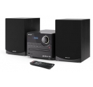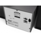 The system has a clean, black finish and a minimalistic front panel, making it easy to integrate into any décor. Its vertical layout saves space, while the separate speakers can be positioned for optimal stereo imaging. The LCD display is easy to read, and the included remote control offers intuitive navigation of all features and modes.