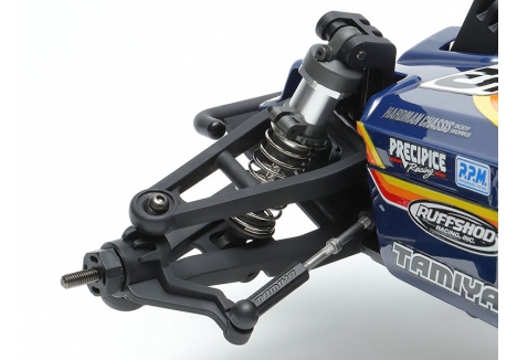 - Rear-transverse motor layout – ensures maximum traction via the Tamiya BB-01 rear wheel drive chassis design.